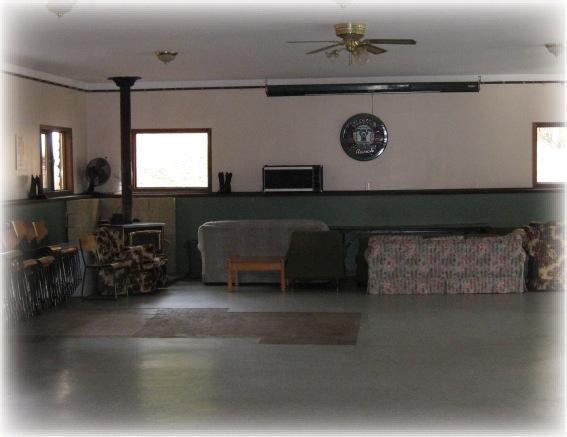 Dining Room: Cozy lounge area with wood stove that can double as a meeting area or inside games area, where the coffee pot is always on. It features hearty homemade meals served cafeteria style with family style seating. |